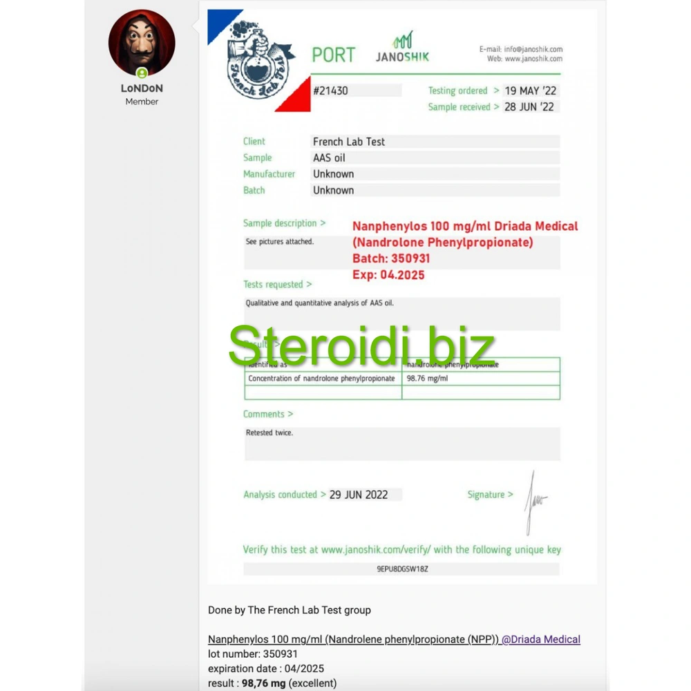 DRIADA MEDICAL – Nanphenylos 100 mg/ml (Nandrolone Phenylpropionate) 10ml vial - Prezzo basso